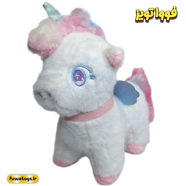 ## 🦄 عروسک یونیکورن اسب تک شاخ بالدار فانتزی – در دو رنگ رؤیایی: صورتی و سفید